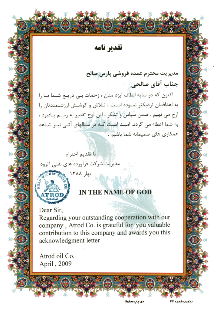 پارس صالح عاملیت رسمی شرکت نفت پارس میباشد